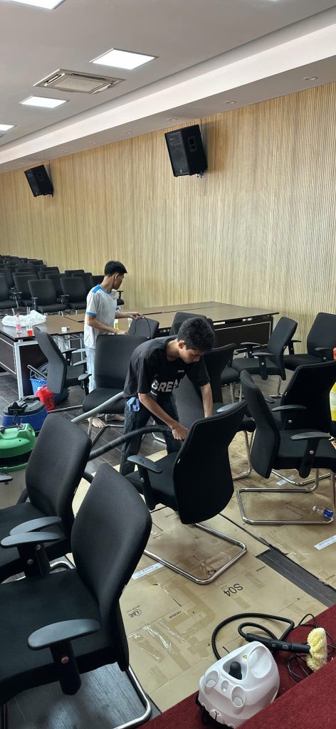 – Chúng tôi luôn sử dụng những dung dịch làm sạch gốc hữu cơ, không gây mùi khó chịu và đặc biệt là có phun nước xả cho mùi thơm dễ chịu